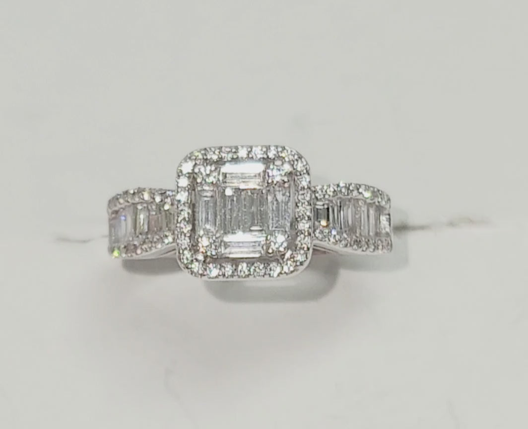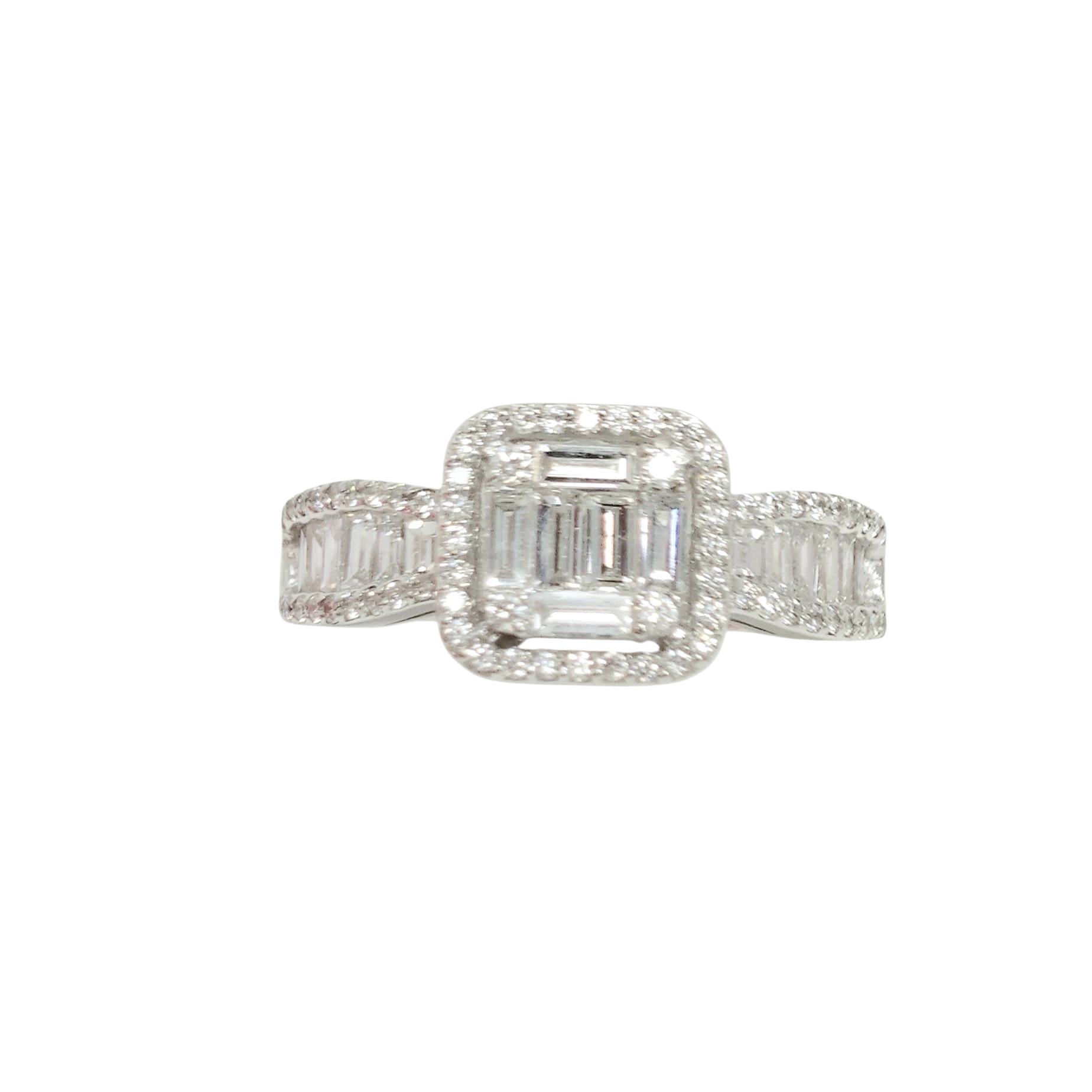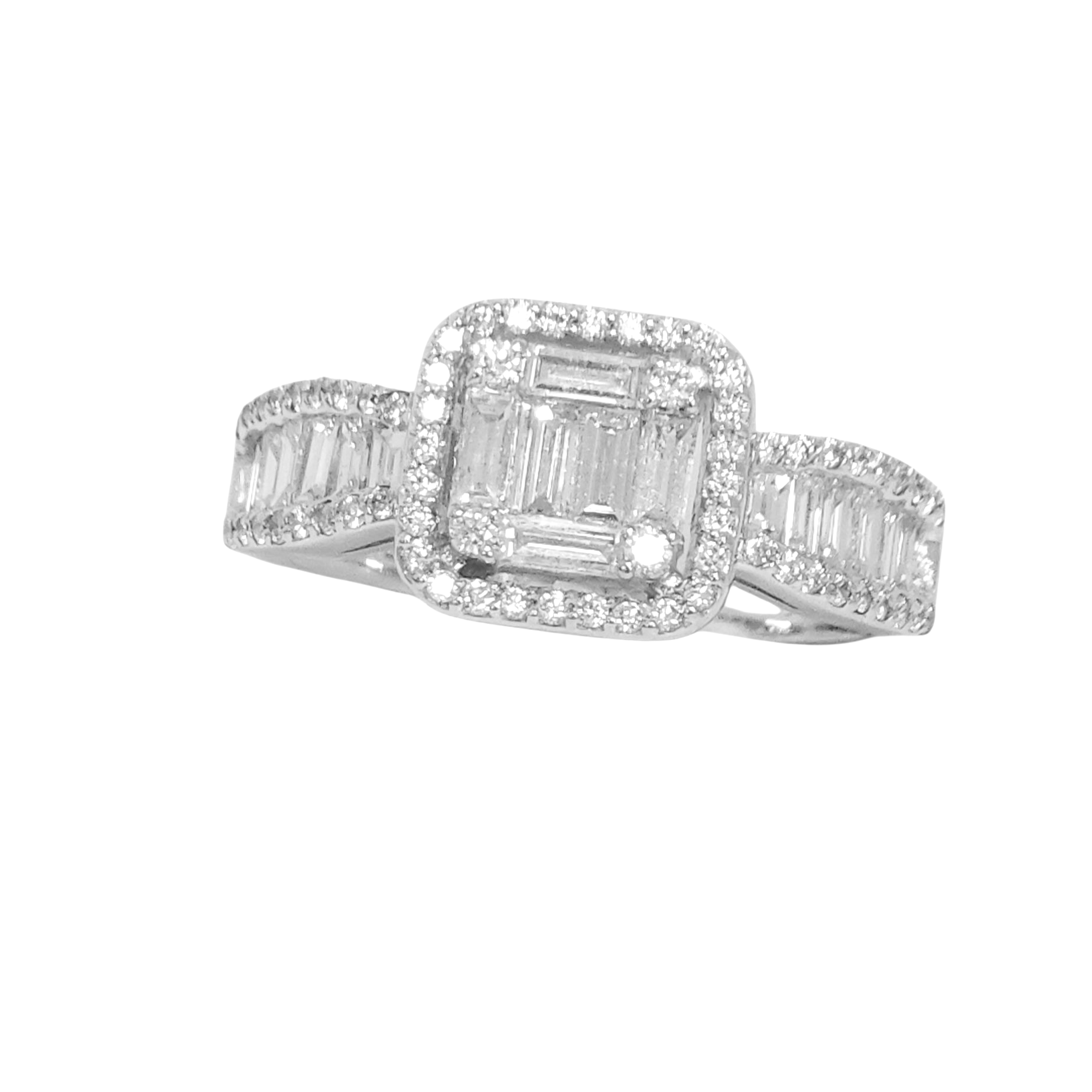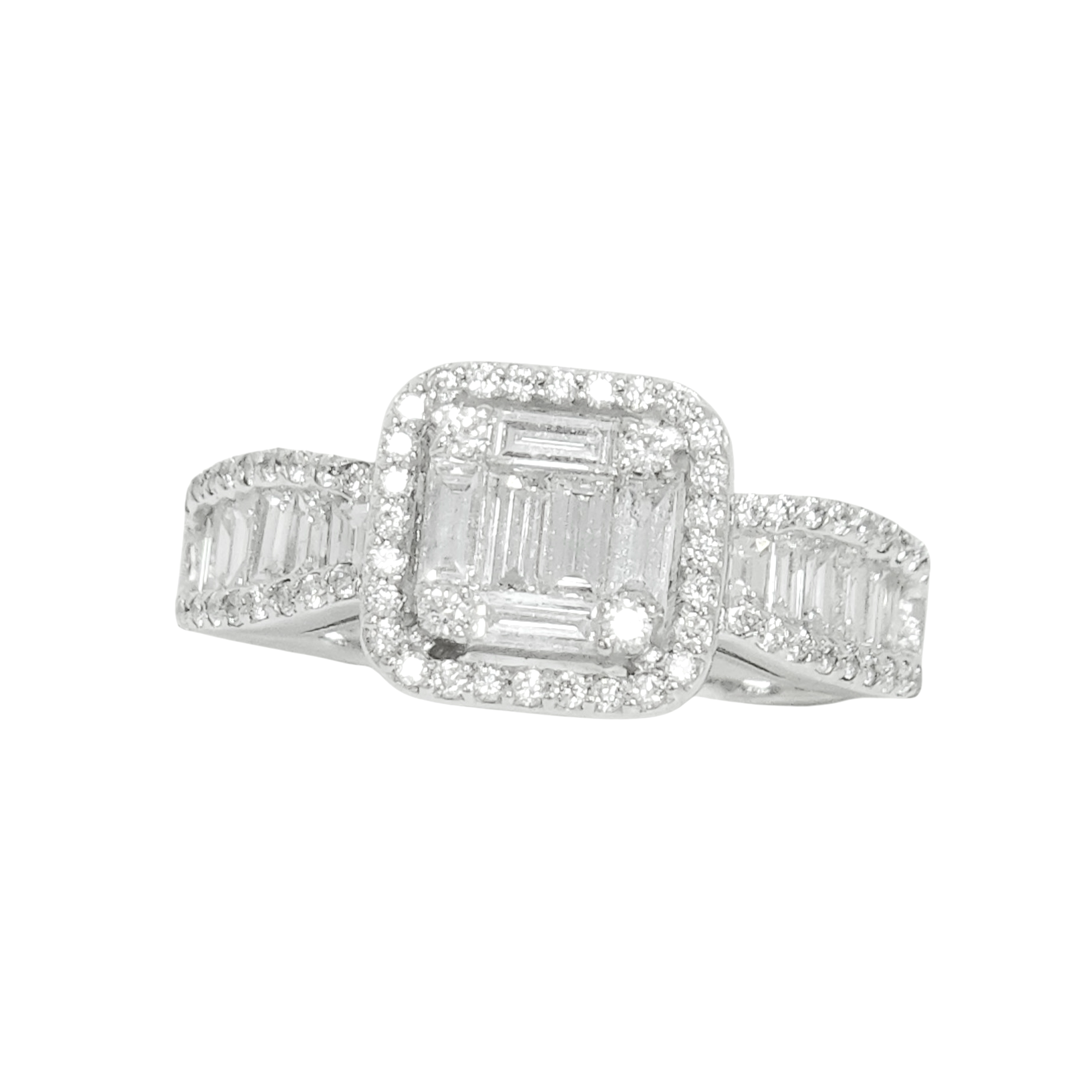 This exquisite Effy 14KW diamond ring features a stunning 1.03-carat round and baguette diamond composition, perfectly balanced on a 4.6-gram band. Designed for size 7, its elegant craftsmanship enhances the brilliance of each stone, making it a timeless piece that adds refined sophistication to any occasion.