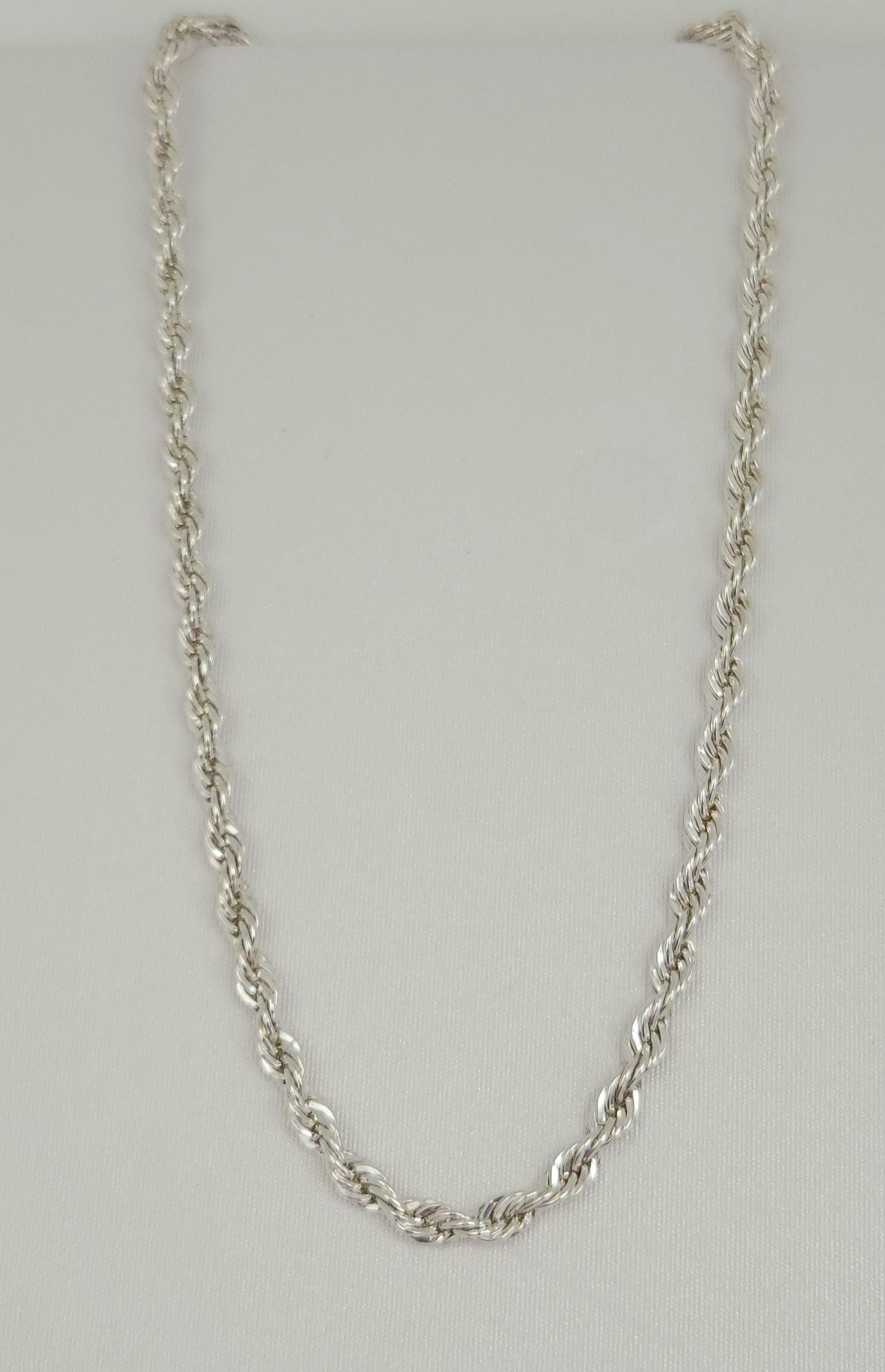 At 14" length this Sterling Silver Rope Chain can be comfortably worn as a choker. 15.6g