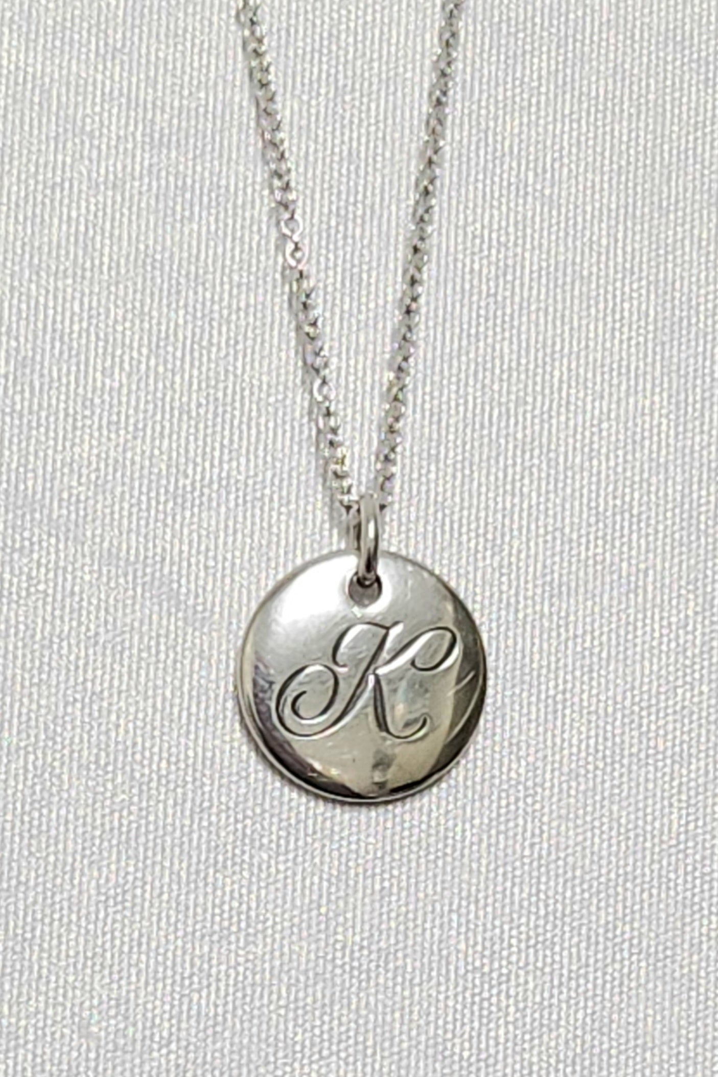 Beautiful Tiffany & Co. Sterling Silver Alpha Charm with the letter *K* and 18" chain
