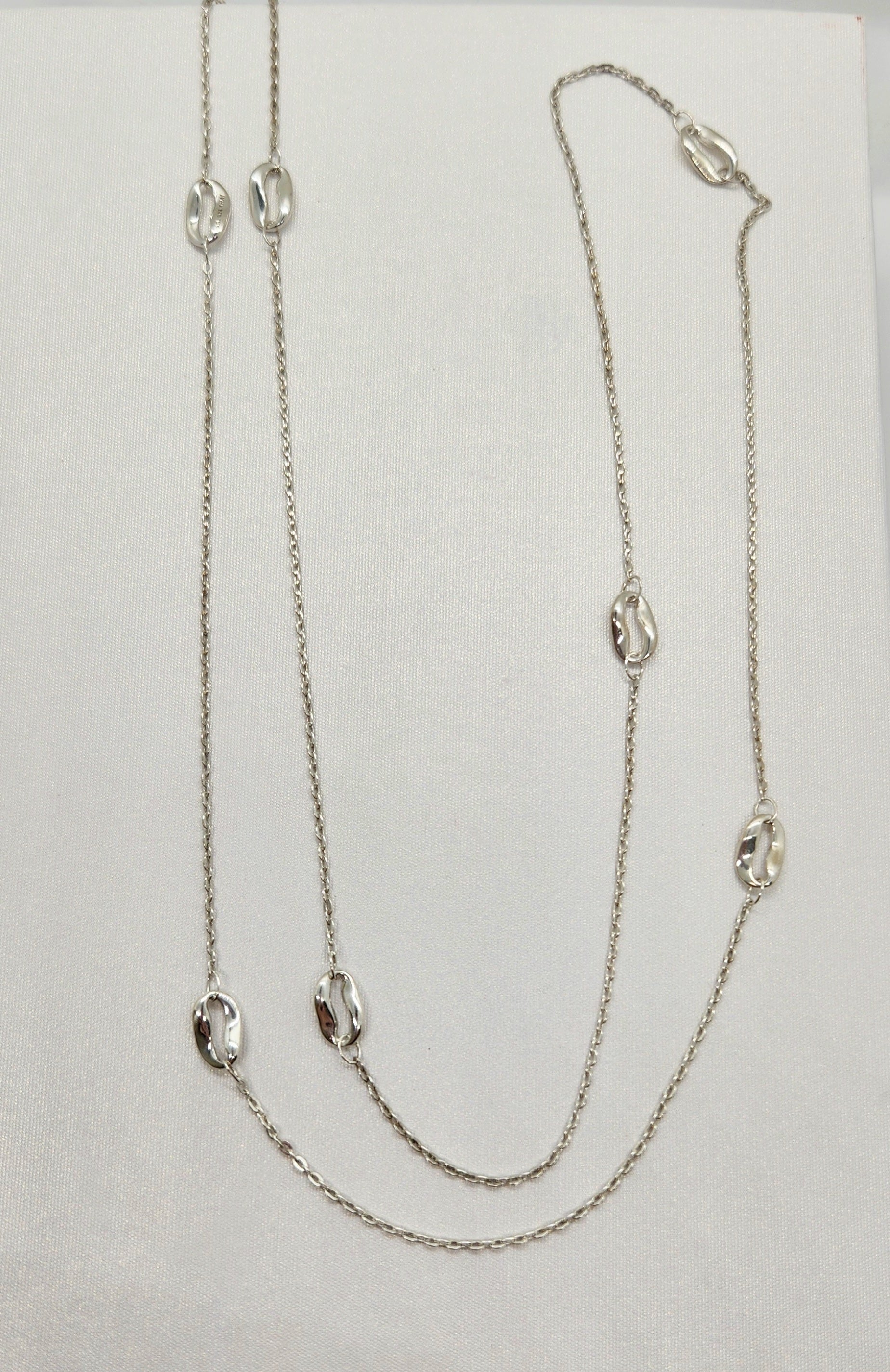 Sterling Silver 36" open bean necklace with trigger clasp. Layer with your other favorite chains, 7.8g