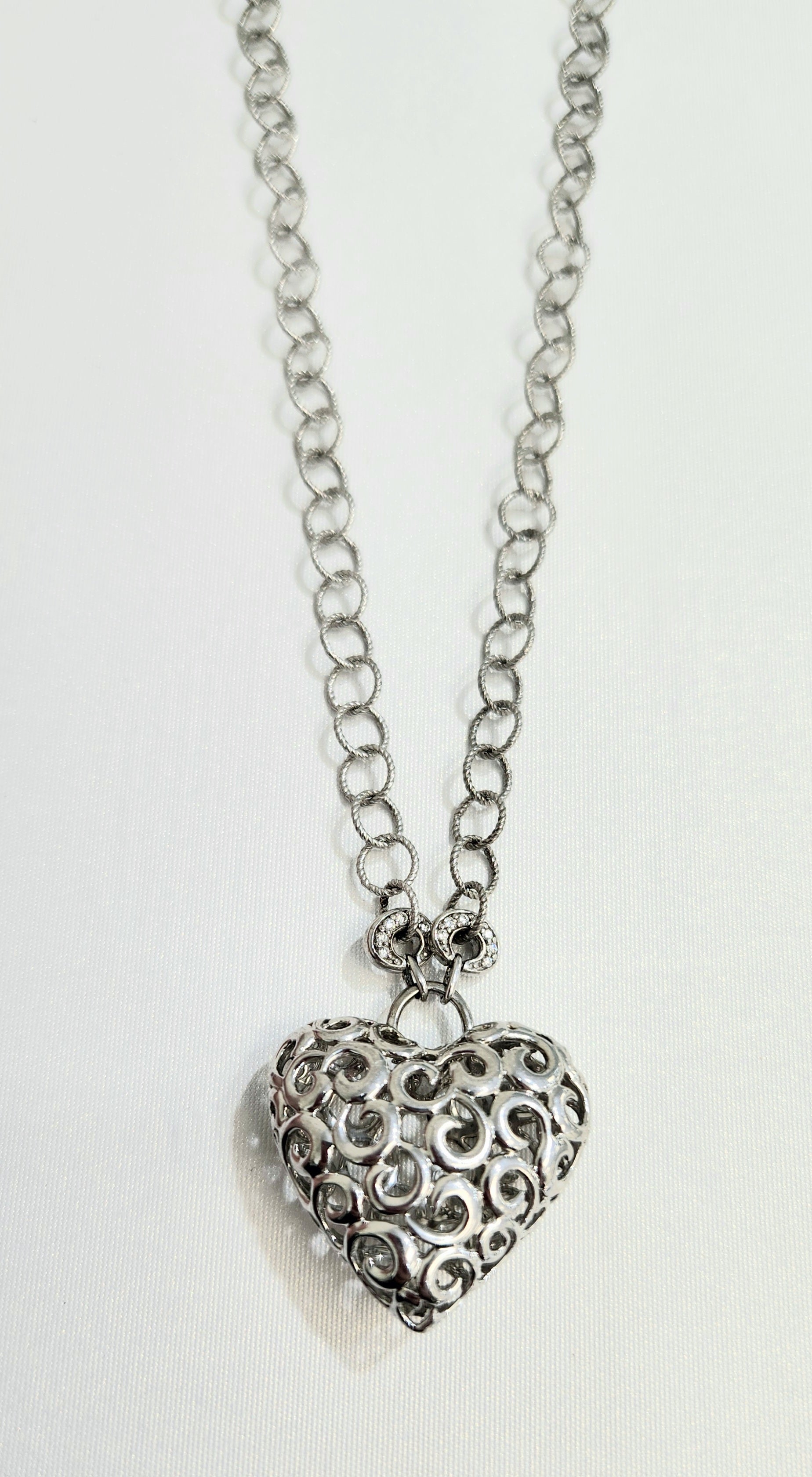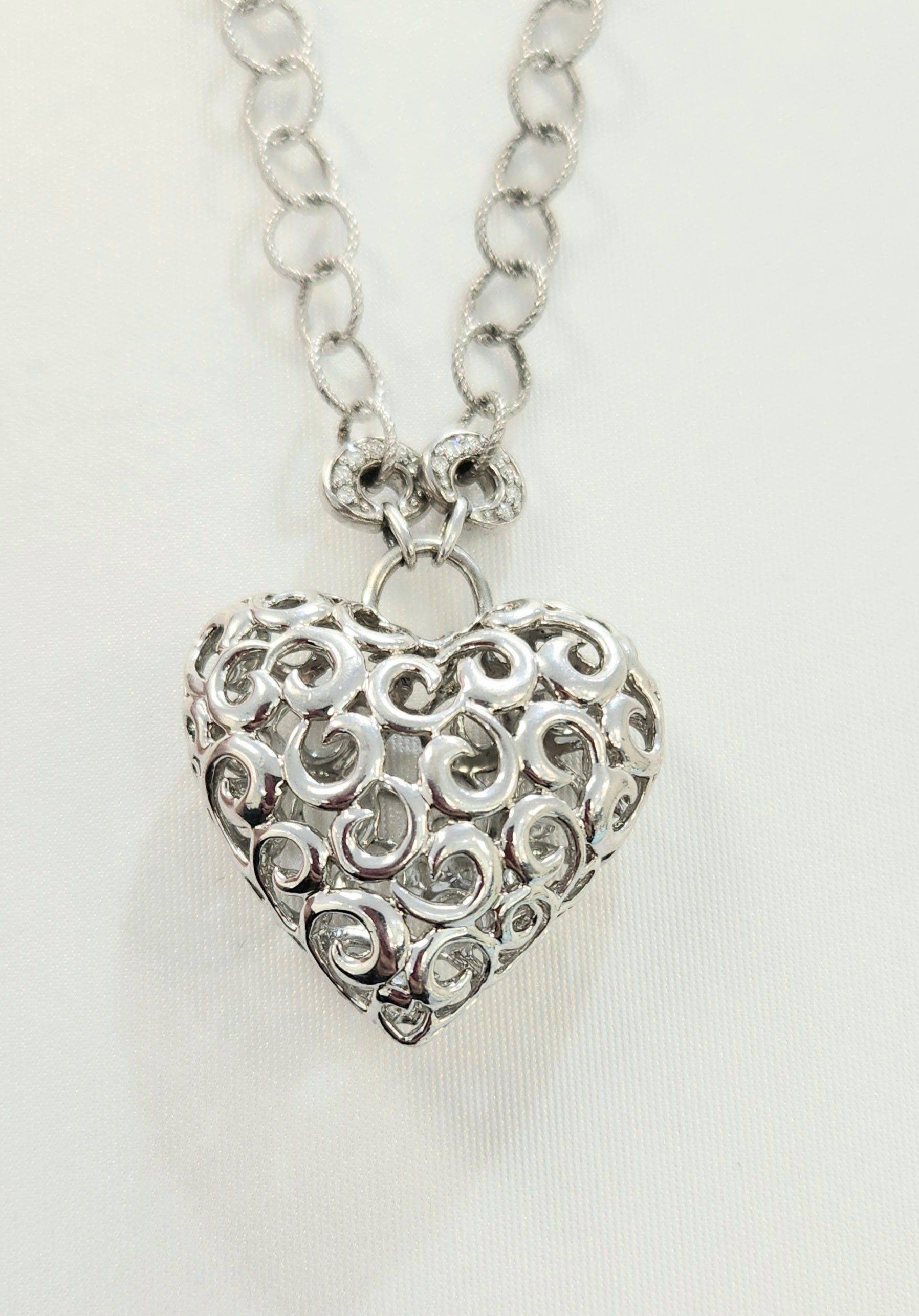 Uniquely crafted Kathy Ireland puffed heart necklace in Sterling Silver with Diamond Accent, 16" lock ring chain