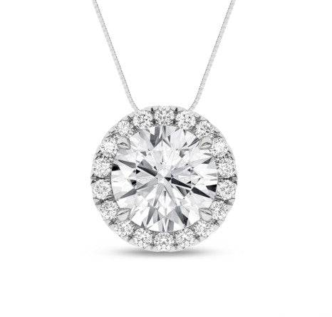 Elevate your elegance with our Sparkling Round Lab Grown Diamond Halo Pendant, expertly set in 14KT white gold and studded with 1 1/6 ct total diamond weight. The round centerpiece of this pendant is the 1 CT
