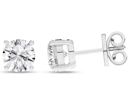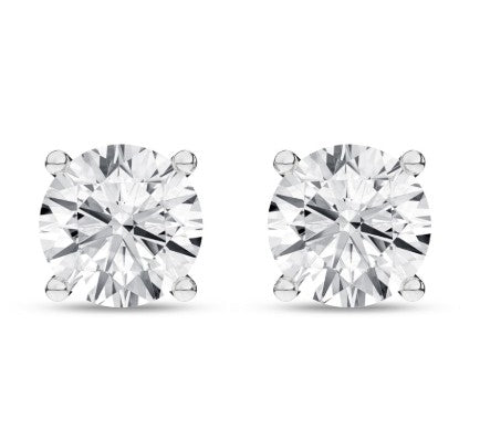 Timeless round Lab Grown diamond solitaire stud earrings, IGI-certified for their exceptional quality, are set in 14KT white gold and radiate with a total of 1 1/2 CT of diamonds.