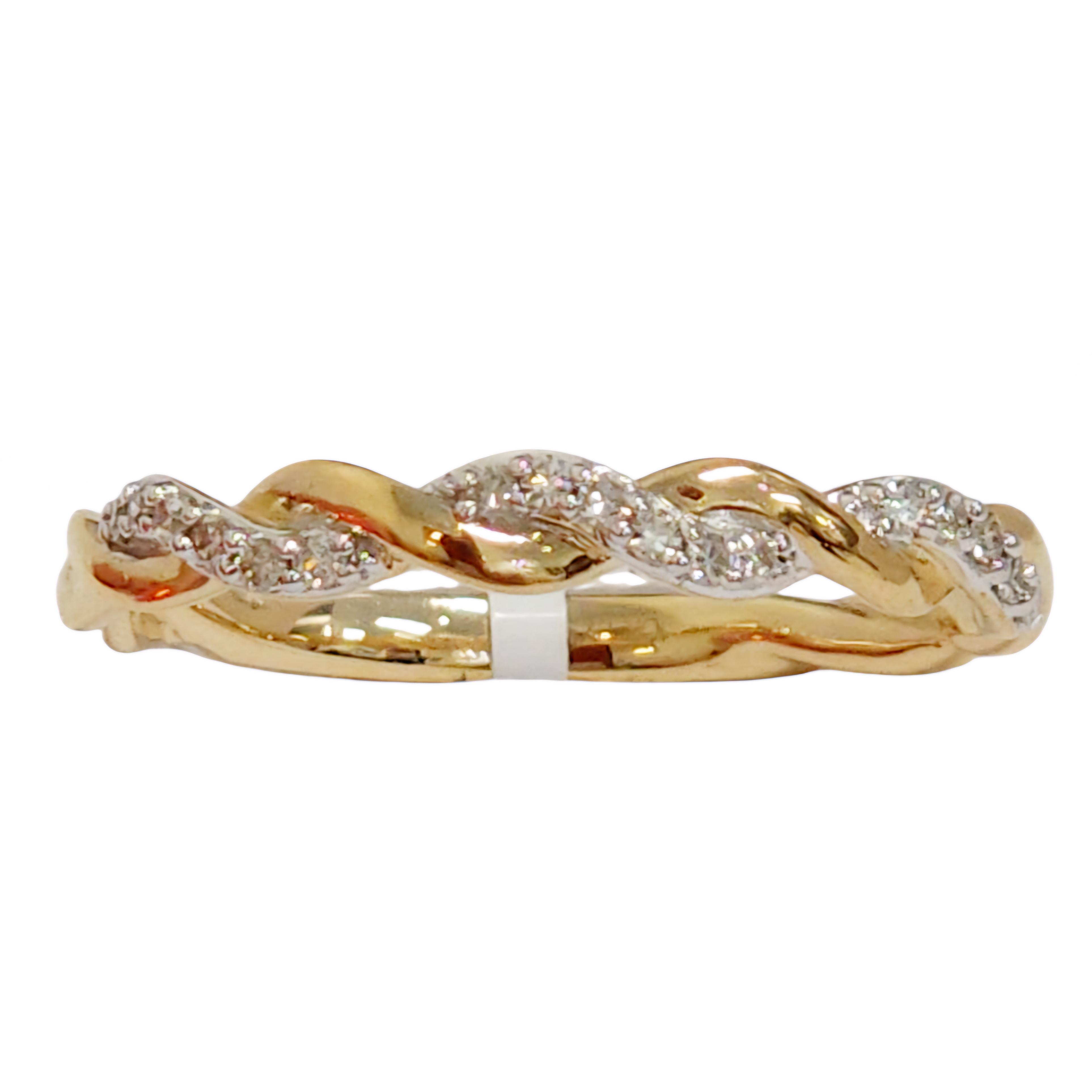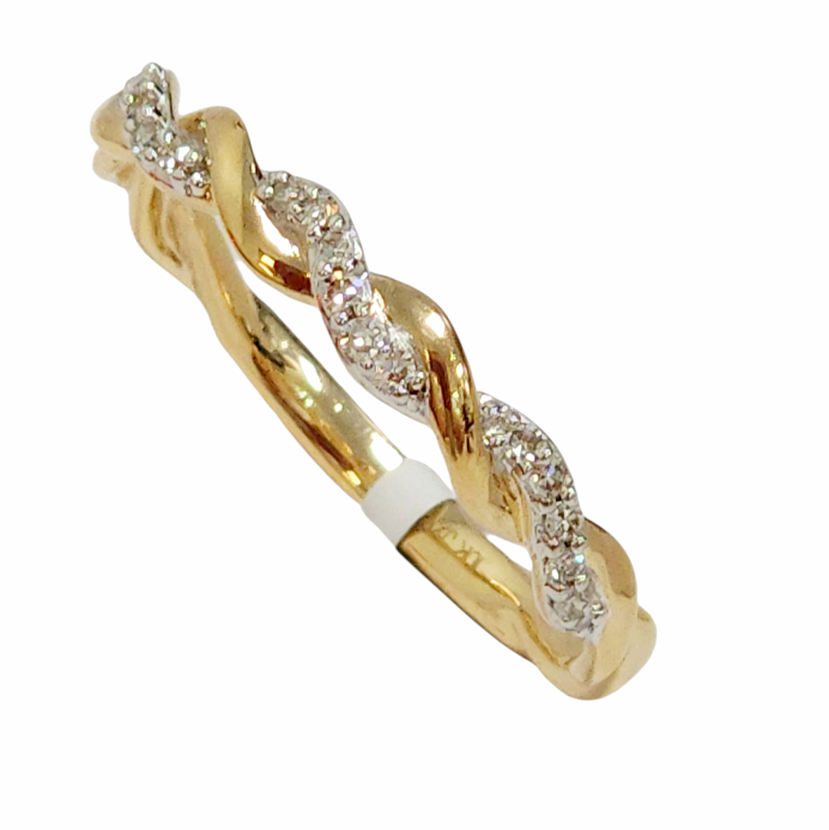 Add a little golden twist to your stack game with this 10K yellow gold diamond band, where subtle curves meet radiant shimmer: Twisted gold design; Sparkling diamond accents; Perfect for layering