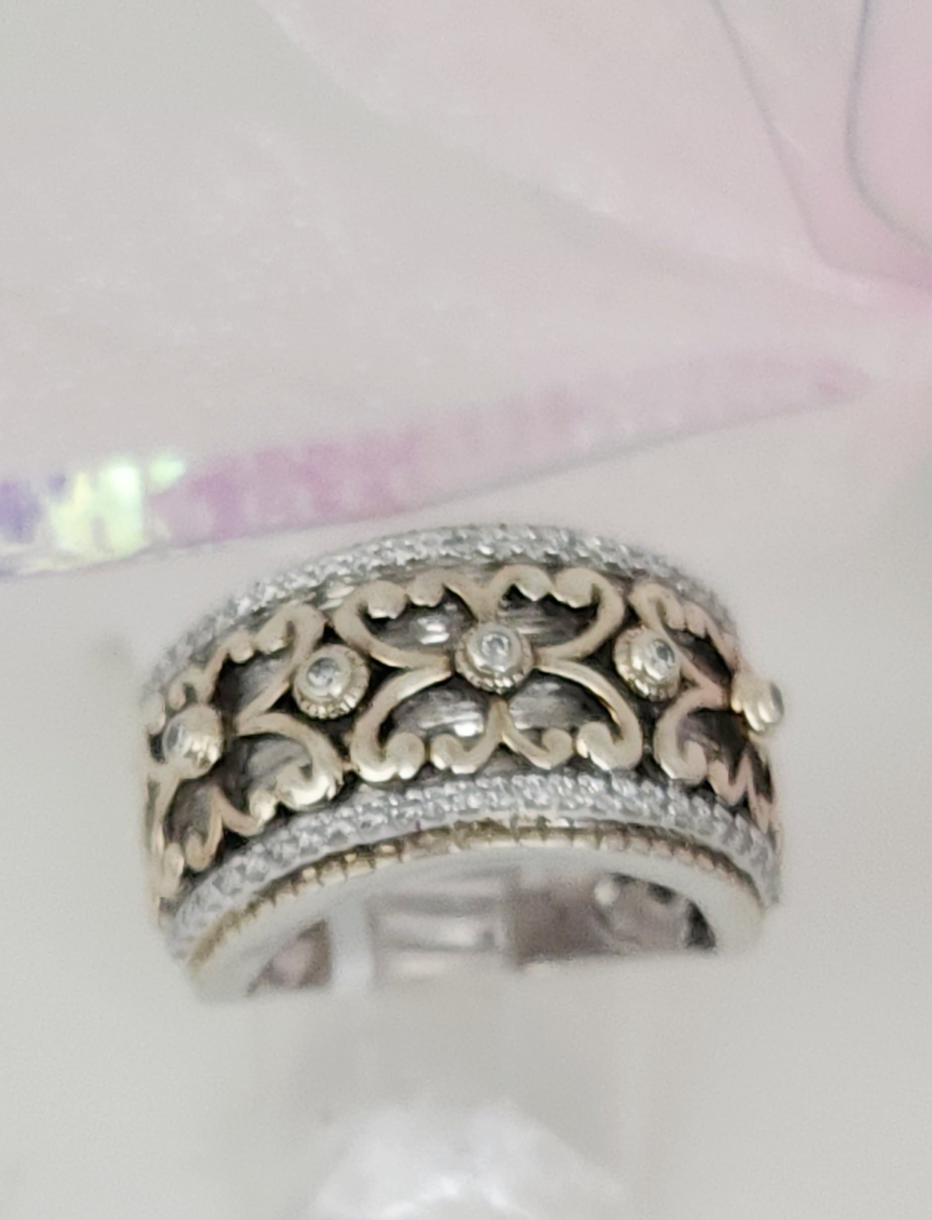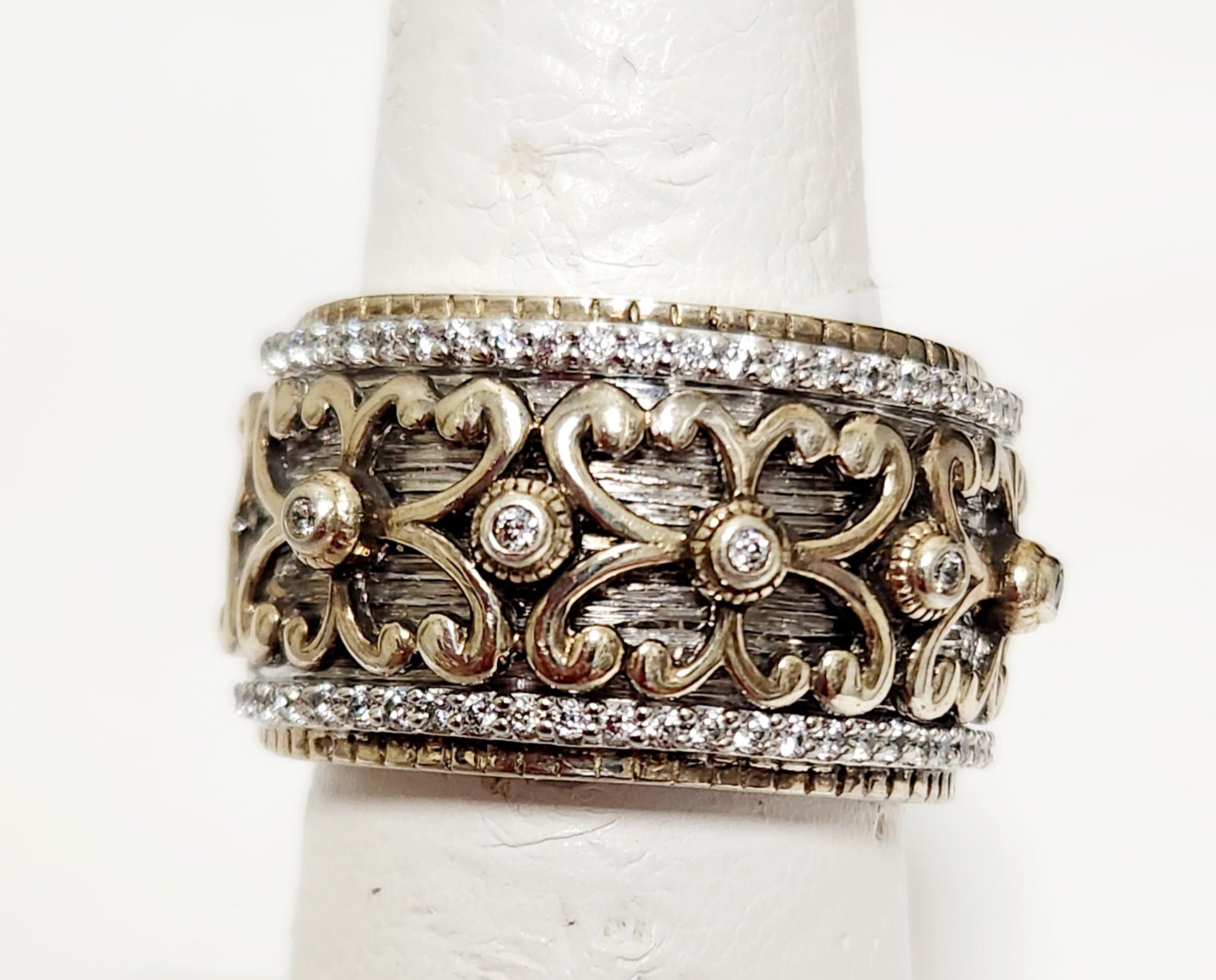 13mm wide band Sterling Silver & Vermeil ring with Cubic Zirconia, 10.1g, sz 7
