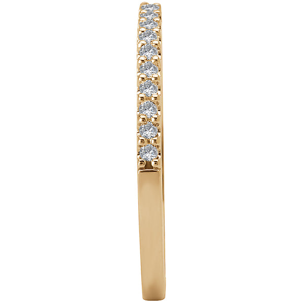 This is a straight 14kt yellow gold wedding band with 20 round diamonds along the front. (D 1/6 carat total weight)