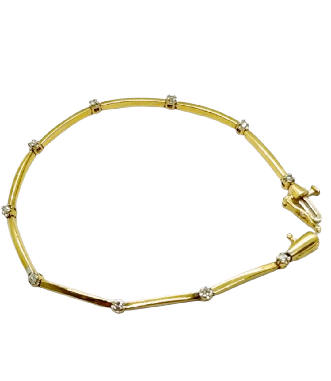 A beautiful bracelet for everyday wear. From our Estate Collection. 10K yellow gold 1/4 CTW 10 Diamond Petite Dainty Bar bracelet, 7", 5.2g. See Store for details.